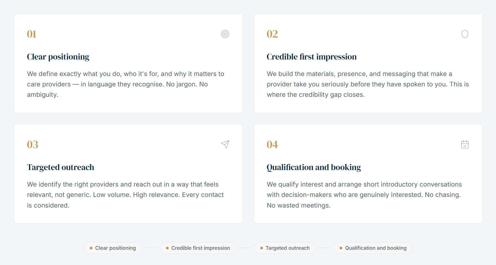 This works best for businesses that already have a proven service and want a more consistent way to reach care-home decision-makers.